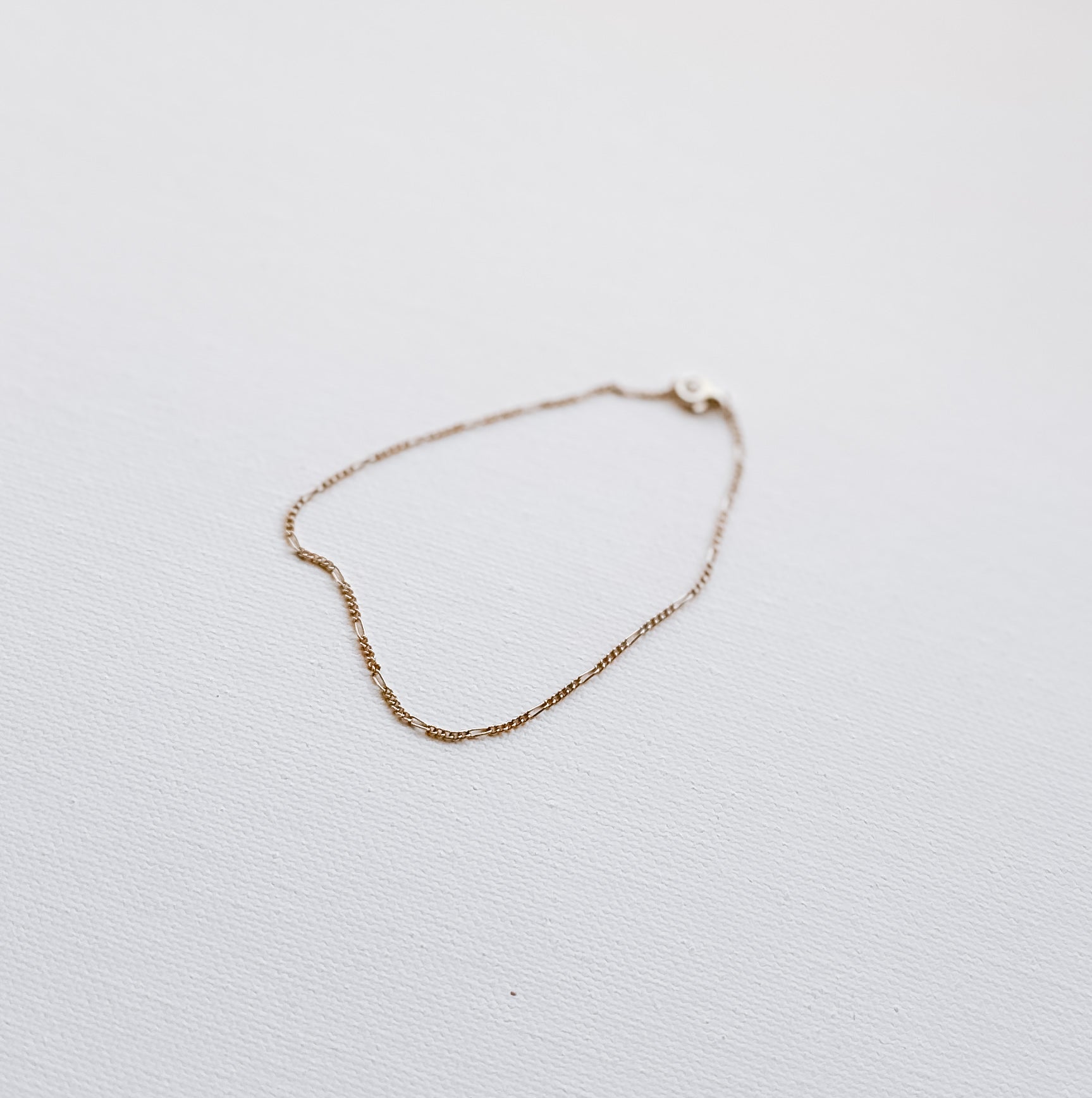 Dainty 2mm Figaro chain bracelet. 7” chain. Please contact for additional sizing.