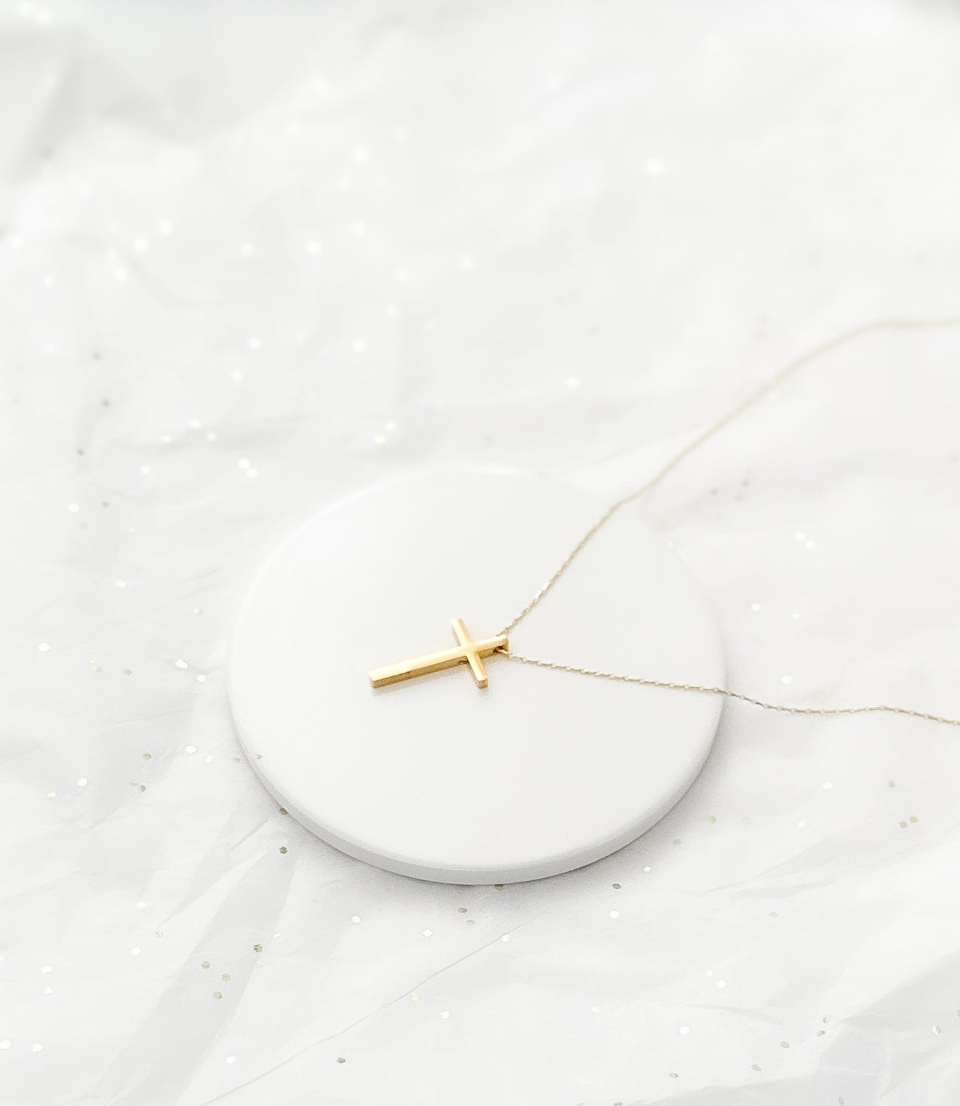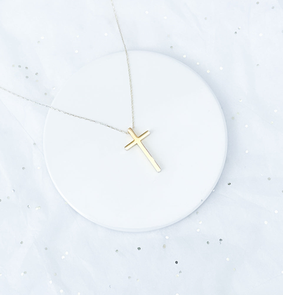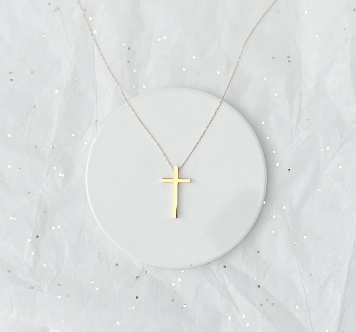 18” rollo chain with a unique cross pendant. So much prettier in person!